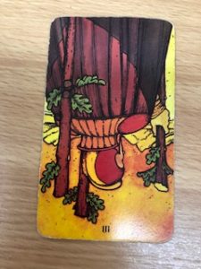 本日のタロットカード1枚引きは、「ワンド3」逆位置です。